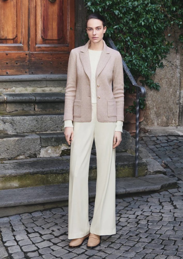Ole is a superb bolero jacket that will complement many of your outfits. With its short, waistcoat-like cut, shawl collar and patterned fabric that differs between the back (which you can tie) and the front, it’s highly original, combining elegance with a fashionable edge.